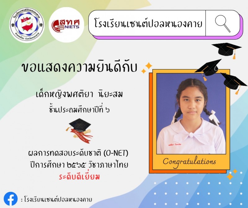 ขอแสดงความยินดีกับนักเรียนชั้นประถมศึกษาปีที่ 6 ในการทดสอบทางการศึกษาระดับชาติขั้นพื้นฐาน (O-NET) ประจำปีการศึกษา 2565