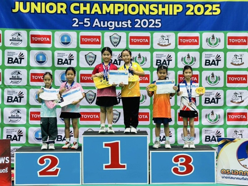 รายการ BAT - ROI ET Junior Championship 2025 LEVEL 5 ระหว่าง วันที่ 2 - 5สิงหาคม 2568 ณ.จังหวัดร้อยเอ็ด สนามร้อยเอ็ดแบดมินตัน ได้รับรางวัล รองชนะเลิศอันดับที่ 2 ประเภท หญิงเดี่ยว U9 รุ่นอายุไม่เกิน 9 ปี