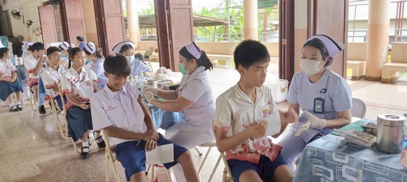 ฉีดวัคซีนป้องกันโรคไข้หวัดใหญ่ ให้นักเรียนที่มีความประสงค์ในการรับวัคซีน พร้อมทั้งได้ให้ความรู้ ในการรักษาสุขภาพ และความสำคัญของวัคซีน ในการป้องกันโรค