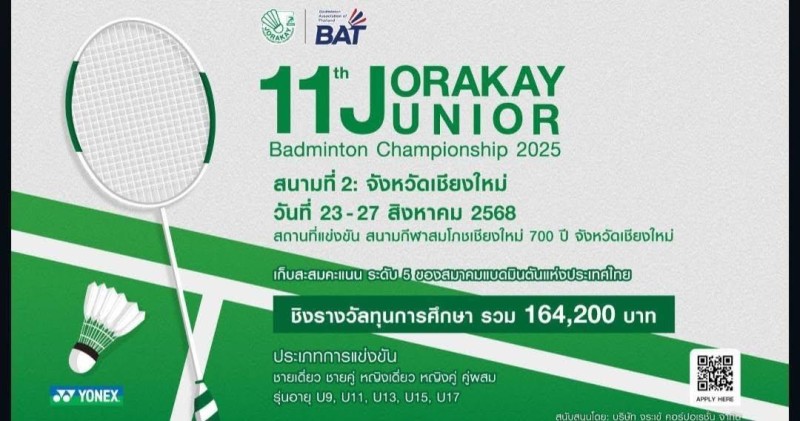 Jorakay Junior Badminton Championship สนามที่ 2 สมาคมกีฬาแบดมินตันแห่งประเทศไทย ในพระบรมราชูปถัมภ์
