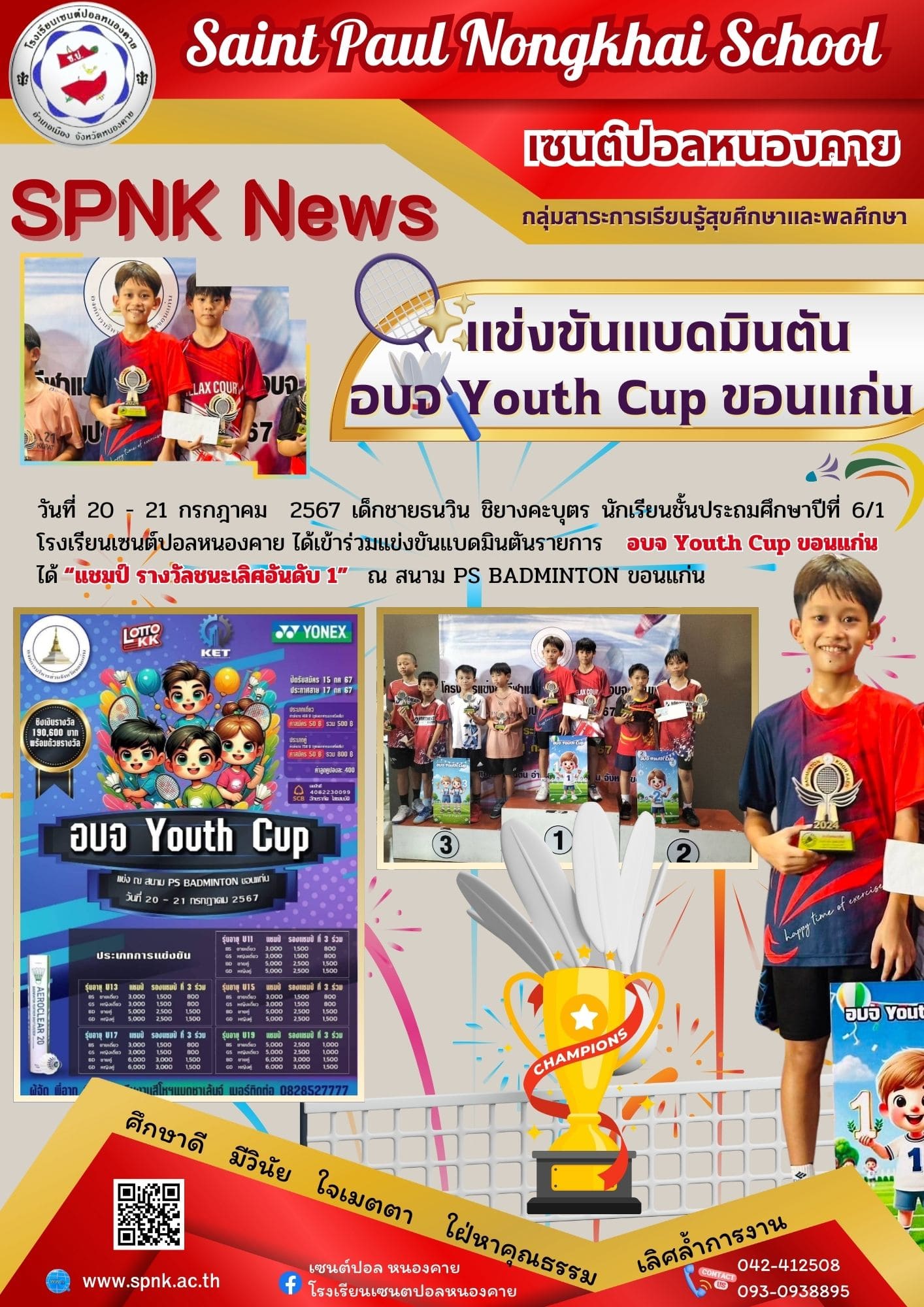 แข่งขันแบดมินตัน อบจ Youth Cup ขอนแก่น เด็กชายธนวิน ชิยางคะบุตร นักเรียนชั้นประถมศึกษาปีที่ 6/1